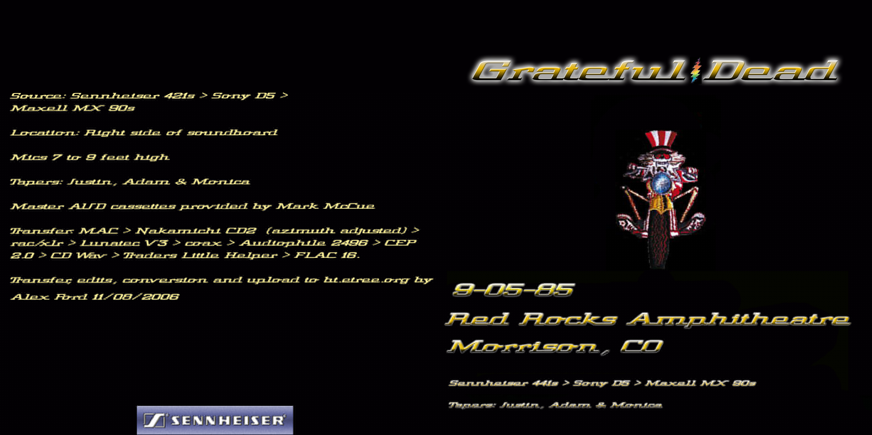 Master Audience Cassettes provided by Mark McCue. Transfer, edits, conversion & upload to bt.etree.org by Alex Ford 11/08/2006.