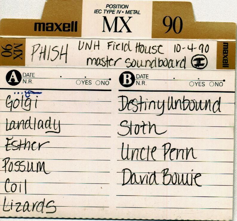 Phish, see cassette cover scans at bottom of this page.