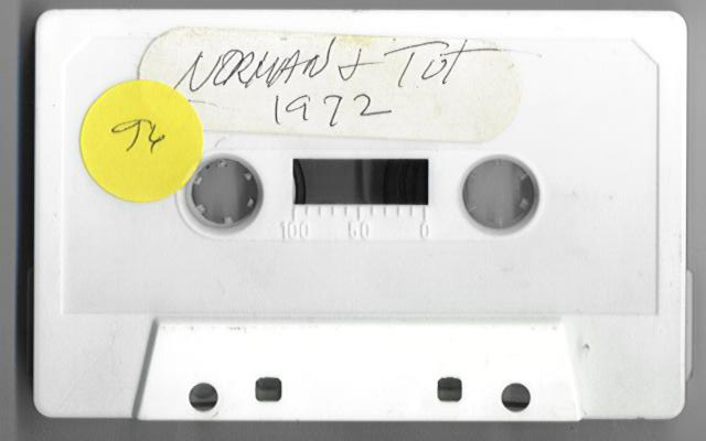 The tape was a white plastic unlabled cassette with a sticker that reads "Norman and Tut" on it.